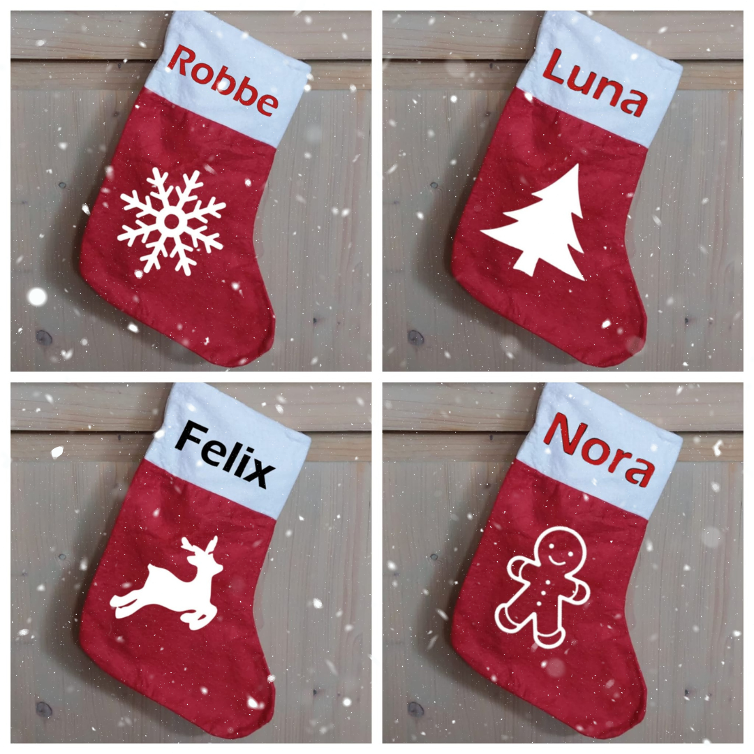 Kies de afbeelding (kerstboom, kerstkoekje, rendier, sneeuwvlok of kies zelf een afbeelding), kies de tekst.