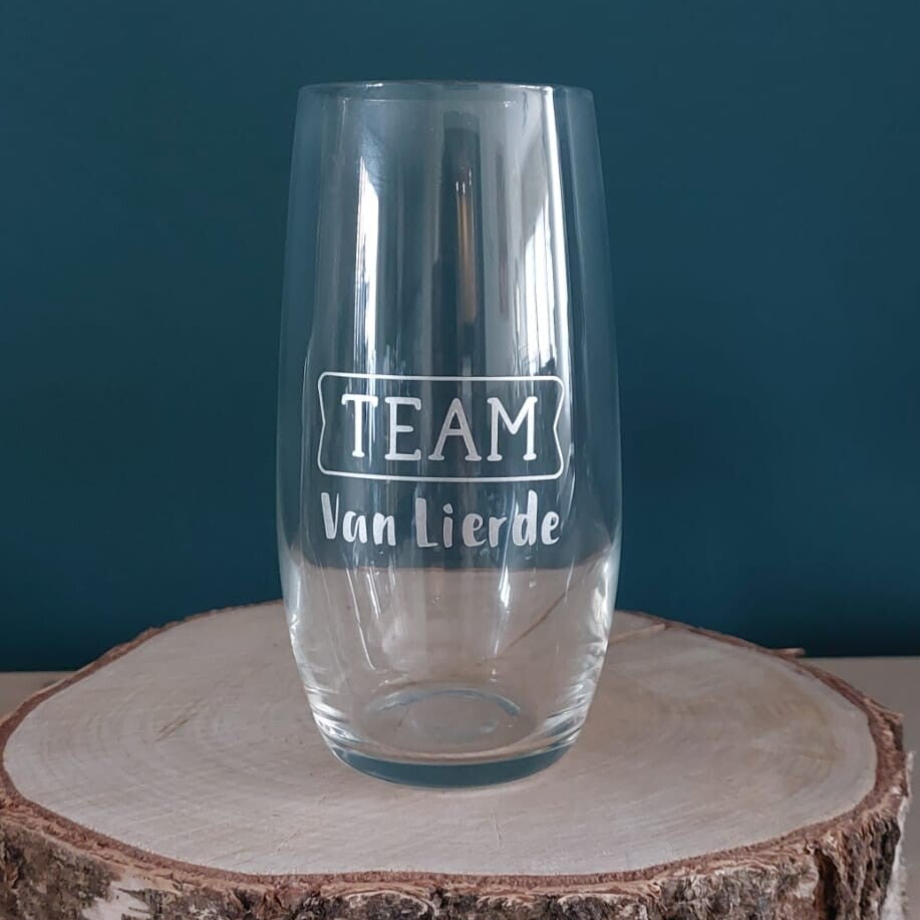 Glas met gepersonaliseerde tekst (opdruk in vinyl)