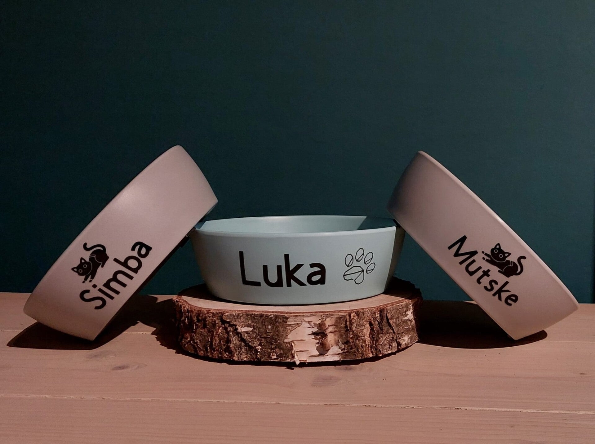 Keuze uit 3 kleuren: roze, turkoois of grijs met opdruk in vinyl